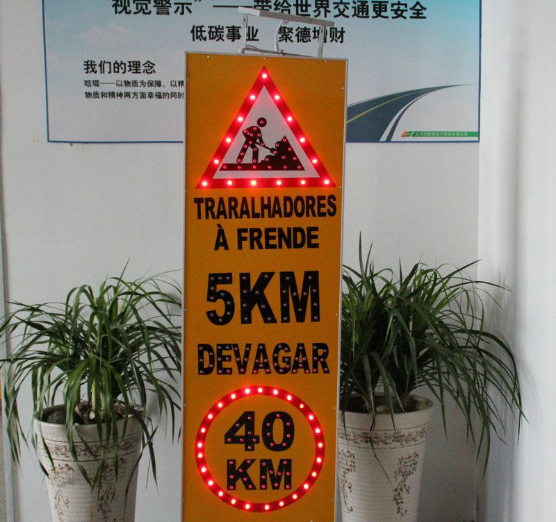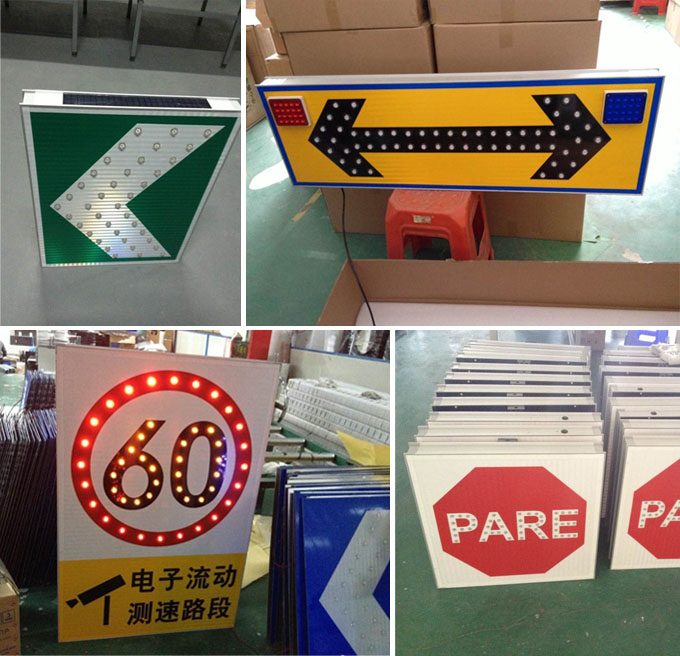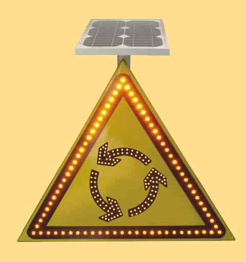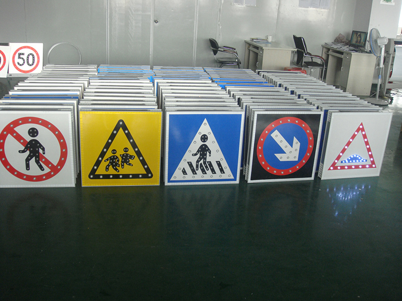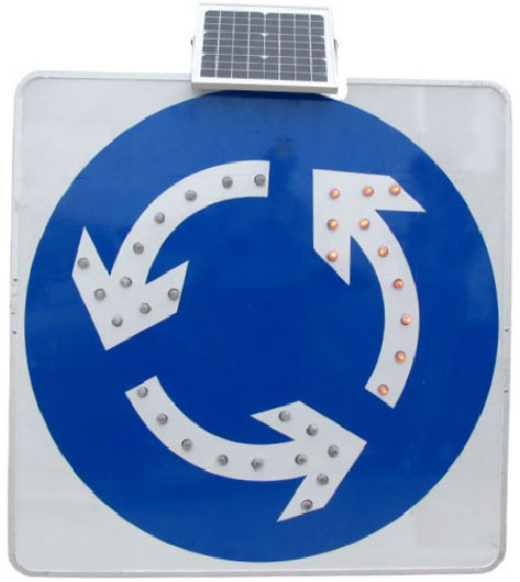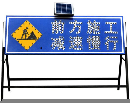 太陽能交通標志是交通標志牌的一種,由標志面、標志底板、太陽能電池板、控制器、發光單元(LED)組成,用文字與圖案傳遞警告、禁令、指示信息給司機和行人,用以管理道路交通的安全設施。白天太陽能電池板吸收太陽光,把太陽能轉化成電能,儲存在儲能器件中,到了晚上,儲能器件中的電能自動轉化成光能(通過光電開關控制),通過LED發出亮光來勾畫圖案輪廓,傳達交通信息。它給道路使用者以確切的道路交通信息,使道路安全暢通,事關司機和行人的生命財產安全,是一種不可缺少的交通安全附屬設施。